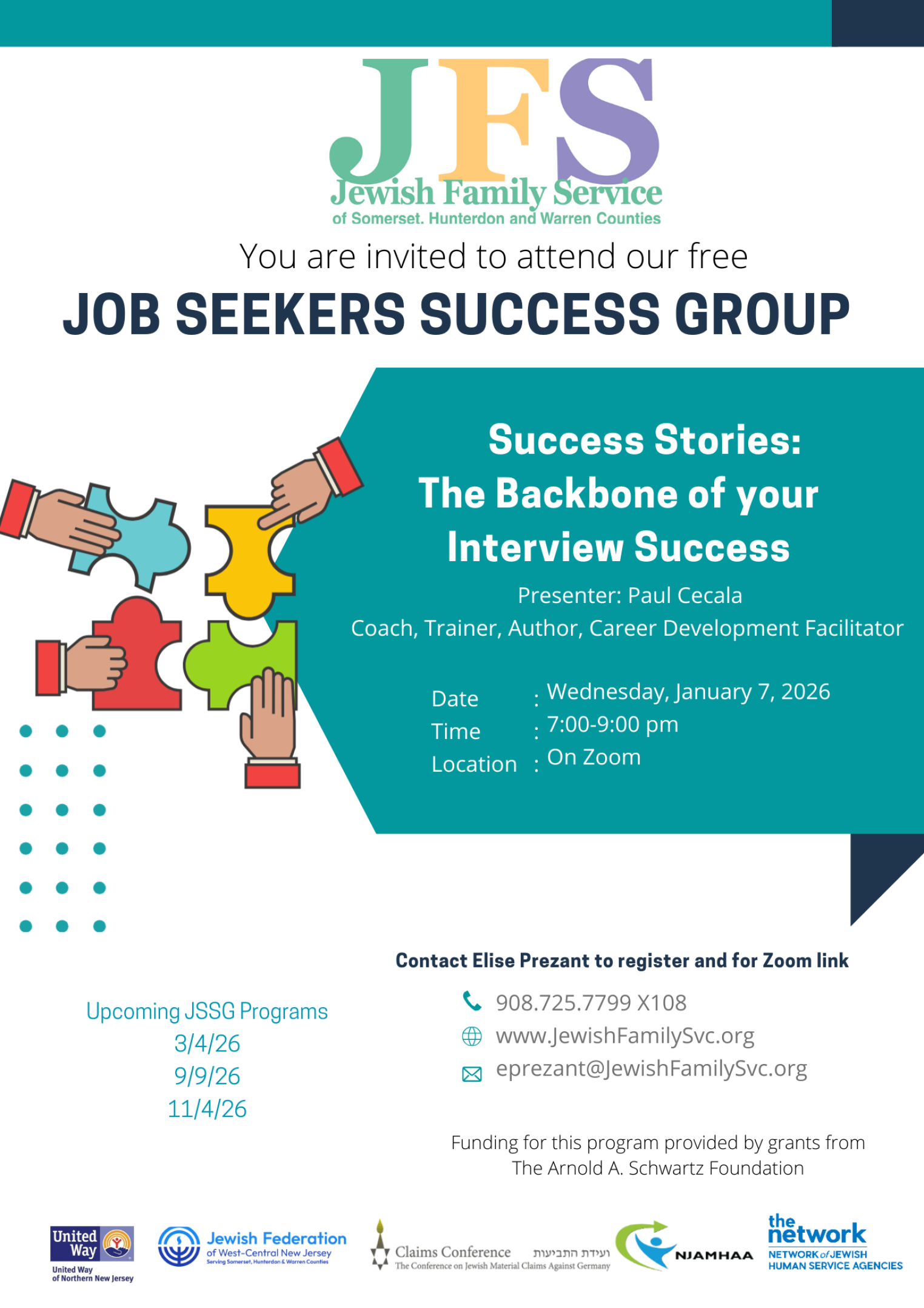 Jewish Family Service of Somerset, Hunterdon and Warren Counties is offering a Job Seekers Success Group for active job seekers who are unemployed, underemployed or seeking a career change. The n...